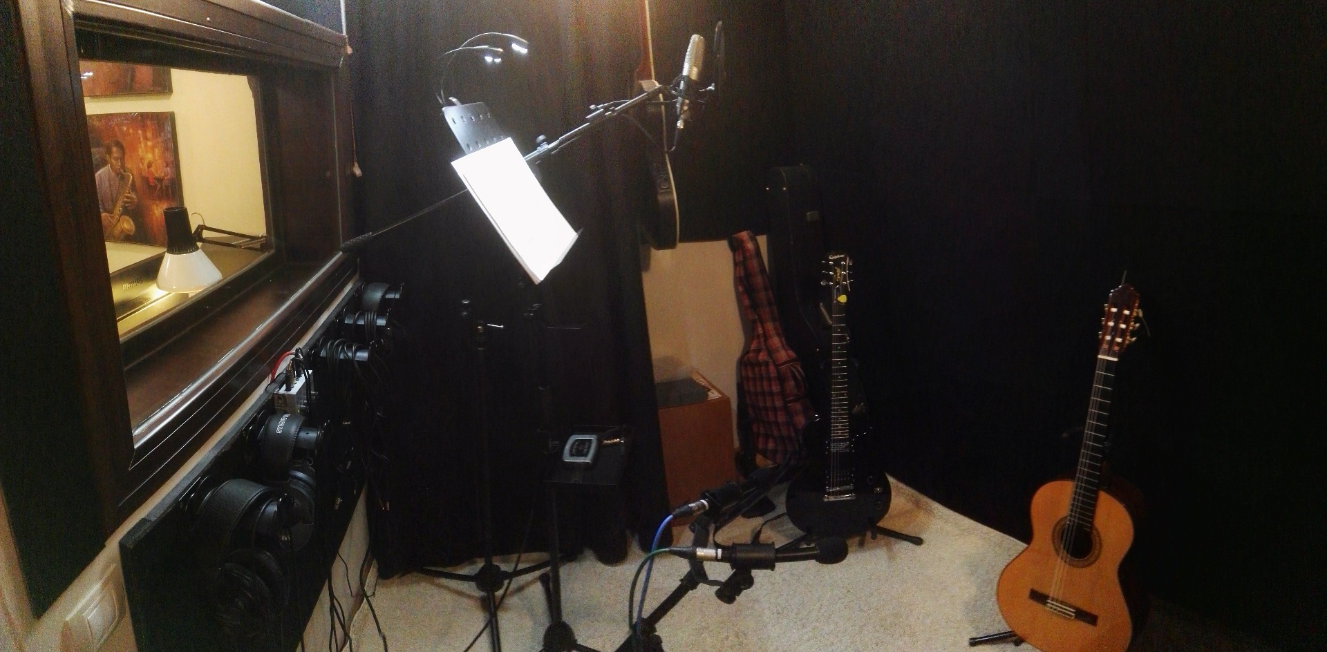 Está ubicado en el sótano de mi casa, en un entorno alejado de ruidos ajenos a la grabación y tendente a conseguir la comodidad y la tranquilidad del músico.